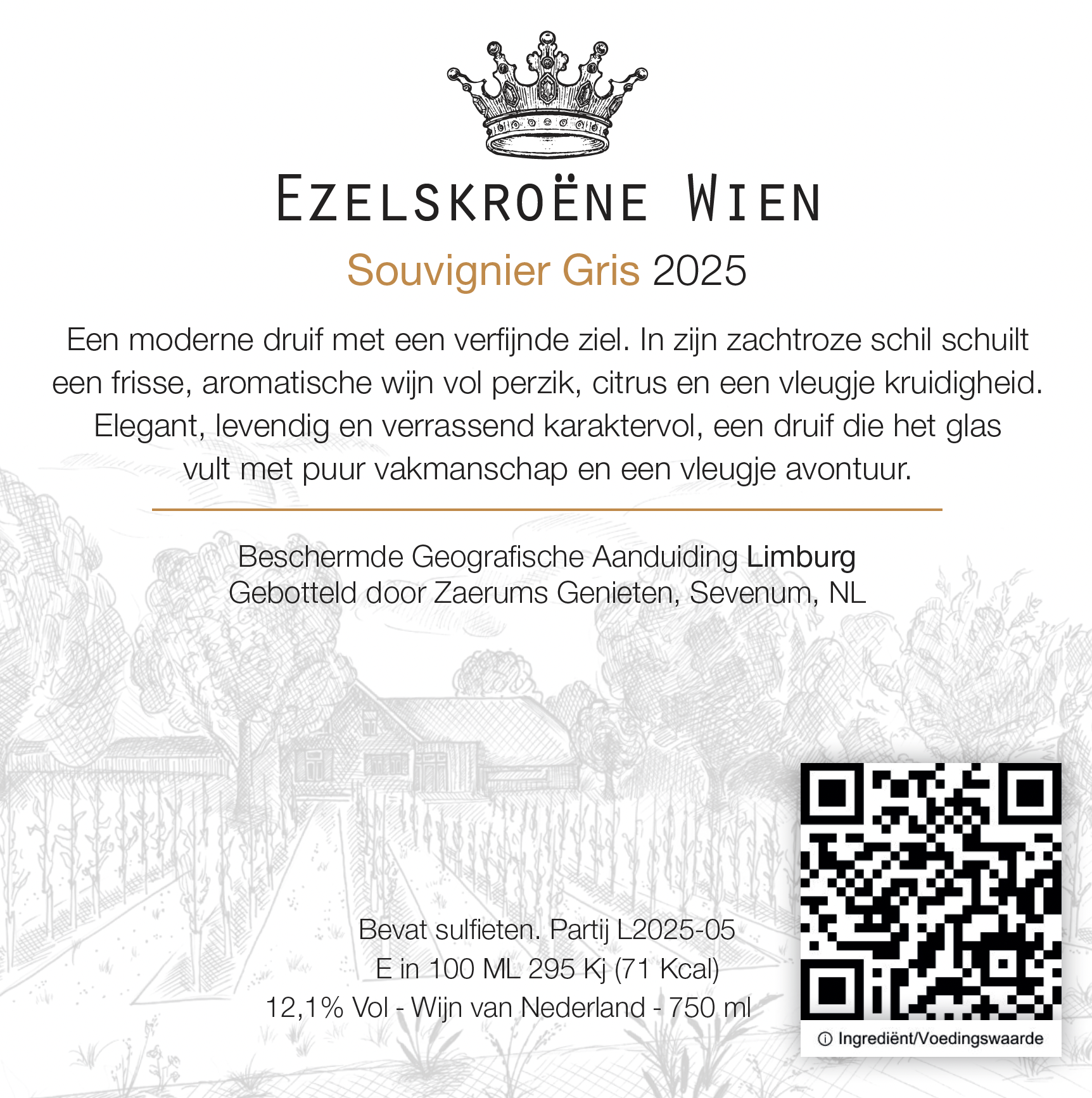 Druivensoort: Souvignier Gris. Bevat sulfieten.